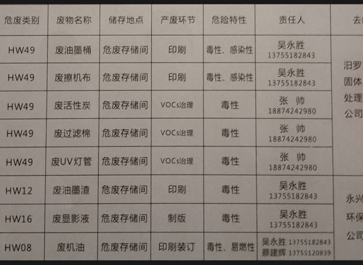 鴻發(fā)印務(wù)危險廢物污染環(huán)境防治信息公示